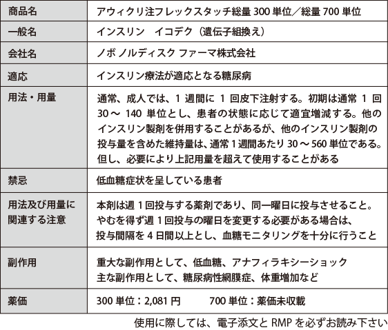 週1回投与の基礎インスリン製剤(アウィクリ注)