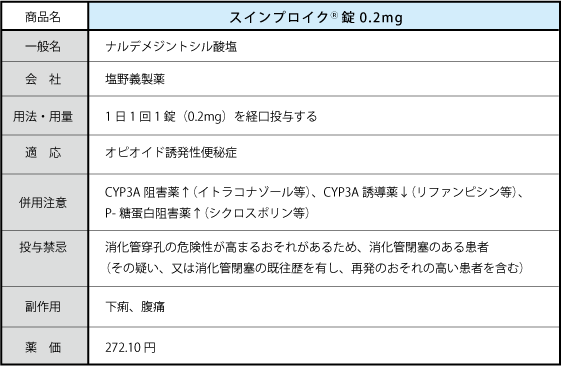 オピオイド誘発性便秘症治療薬(スインプロイク錠)