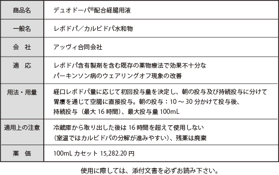 パーキンソン病治療薬(デュオドーパ配合経腸用液)